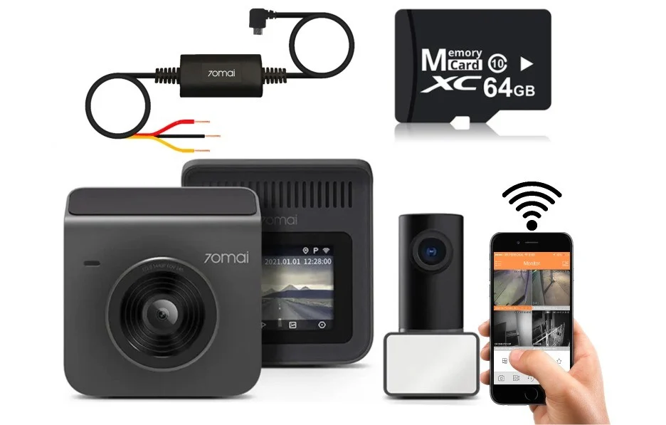 • 70mai Dash Cam A400+Rear Cam Set with 64gb memory card and hardware kit limited offer