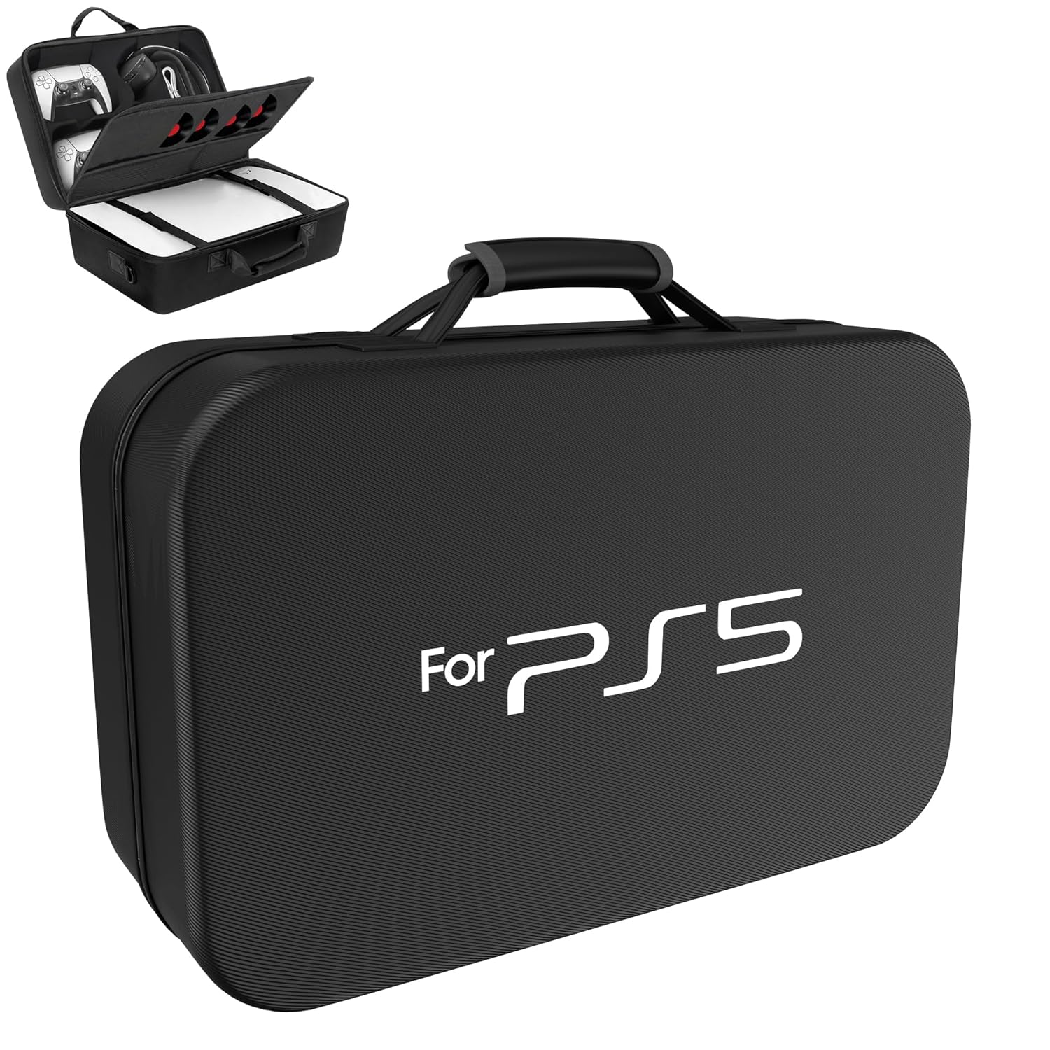 • A hard carrying case for the PlayStation 5 (PS5) is a rugged, protective enclosure designed for transporting the console, controllers, and accessories during travel, LAN parties, or storage. Unlike soft bags, hard cases feature crushproof shells (often EVA or composite plastic), custom foam interiors for shock absorption, and seals against dust/water. They’re essential for the bulky original PS5 (dimensions: 15.35″ x 10.24″ x 4.09″ for Disc Edition; ~8.6–9.9 lbs) or slimmer PS5 Slim (14″ x 8.5″ x 3.5″; ~7.3–8.6 lbs), with many now supporting the PS5 Pro (similar to Slim). Top models like CASEMATIX and Case Club offer IP67 waterproofing and TSA approval for checked luggage. Prices range $40–$100, emphasizing portability with handles/straps. No official Sony case exists; third-party options dominate.
