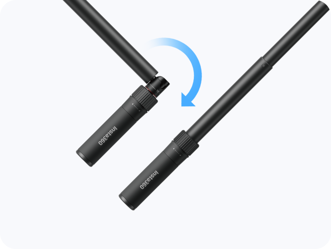 Category Details Length (Extended) 120cm (47.2 inches) Weight 185g (6.5 oz) Material Aluminum alloy with rubber grip Tilting Angles 65°, 75°, 90° (adjustable for Bullet Time) Modes Selfie stick / Bullet Time (quick-switch) Compatibility Insta360 X5, X4, X3, ONE X2, ONE RS, GO series (with adapter) Max Resolution Support Up to 5.7K@60fps Bullet Time (camera-dependent) Included Selfie stick, mounting adapter, pouch, user manual