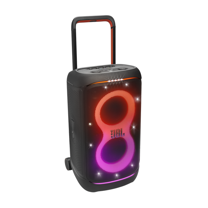 Vibrant Lightshow: Synchronised LED lighting with customizable patterns—controlled via the JBL PartyBox app—for a visual feast.